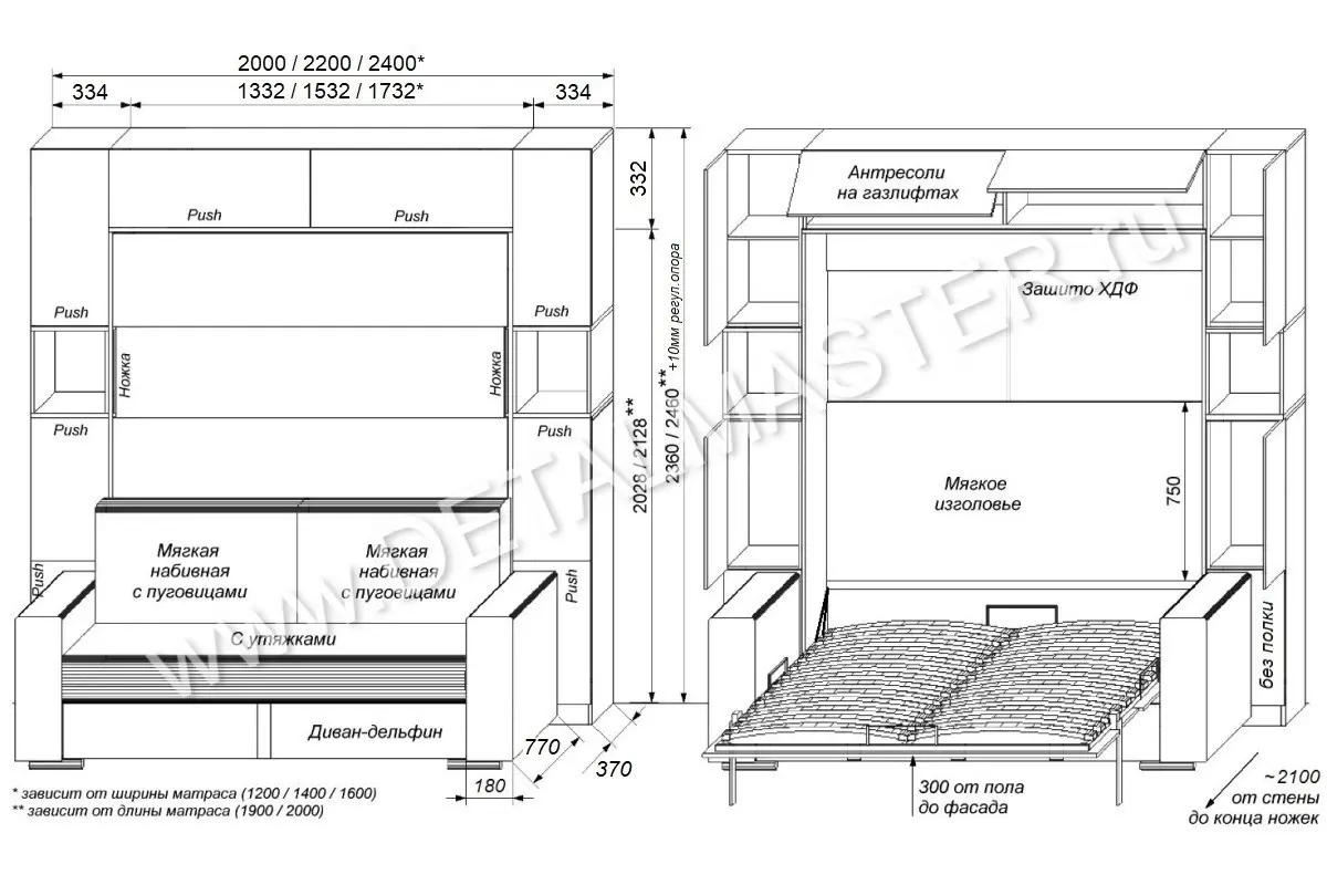 • Корпус и фасад шкаф-кровати, выполненный из ЛДСП;