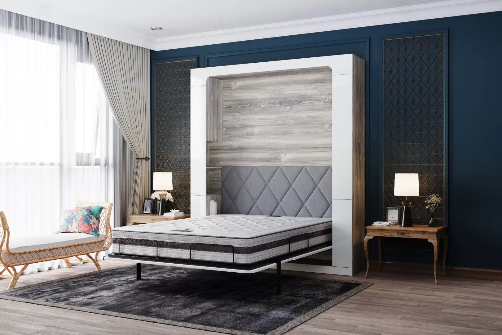 Шкаф-кровать без дивана "Premium Nova Balance 2.0" работает на механизме раскладывания собственной разработки "Balance". Кровать раскладывается легким движением руки, превращаясь в полноценное спальное место. Просто потяните за ножку-маятник, которая самостоятельно фиксируется в нужное положение при опускании.